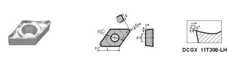 DCGX070204-LH(YD101):適用于鑄鐵、有色金屬尤其是鋁材的精加工、半精加工,亦可加工錳鋼、淬火鋼等硬質(zhì)材料。